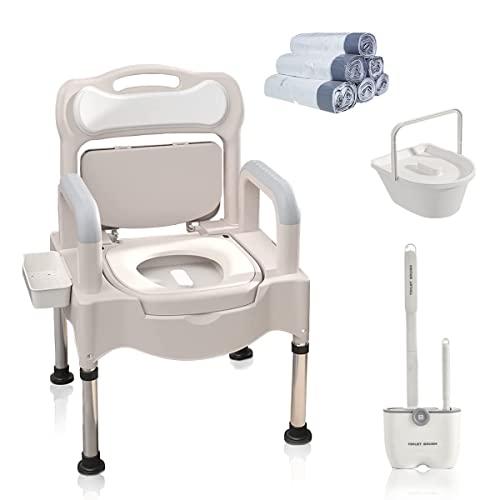 - Comfortable to use: This bedside toilet with our toilet brush set is very easy to clean: Its seat and backrest are made of comfortable PU cushion with a maximum width of 15.7 feet, and the armrests on both sides are designed to be non-slip and removable, effectively protecting the user's safety and preventing falls when using it.