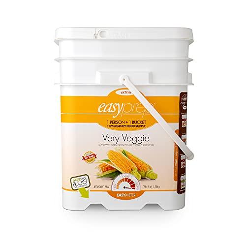 - EMERGENCY FREEZE-DRIED VEGGIES: Add a healthy freeze-dried vegetable selection to your supply of emergency food with EasyPreps Very Veggie kit. One convenient bucket is filled with delicious freeze-dried sweet corn, green peas, green beans, and broccoli that you can eat as a snack or reconstitute with water. This container stores 13 pouches that equal 156 total servings.