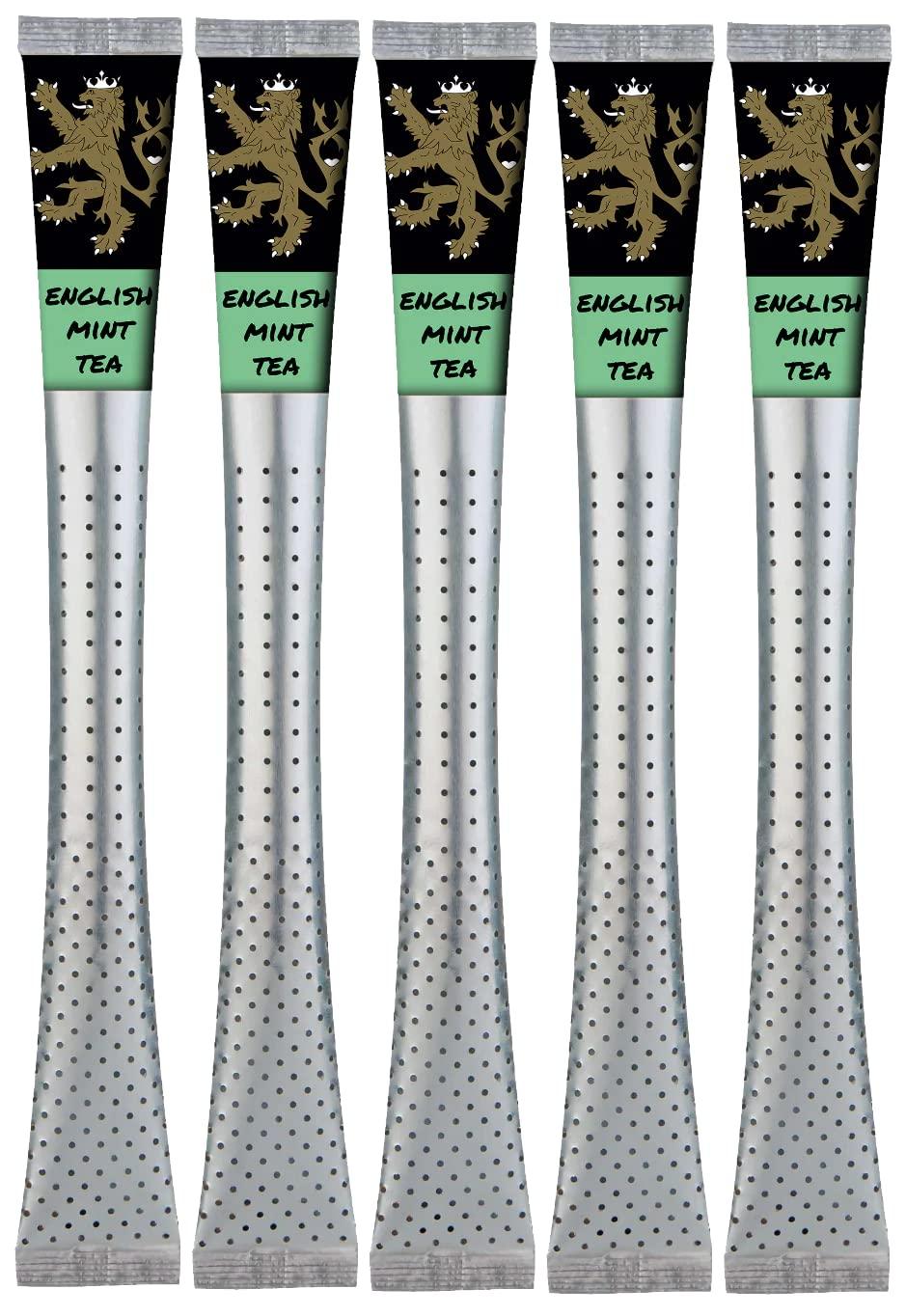 English mint tea is widely acknowledged as a home remedy for an assortment of ailments as well as being one of the most relaxing teas to enjoy. The smooth and cool flavor of mint may help to settle an upset stomach and ease a headache. The bold scent of mint is not only delightful but may also function as a vapor to clear up a stuffy nose. Our English mint tea is 100% natural and herbal which is ideal for anyone who cannot have or is trying to limit their intake of caffeine. Aside from its remedial potential, mint tea is a delicious treat that can be enjoyed with a luscious piece of dark chocolate or a light cucumber sandwich. There is no need for extra utensils thanks to the genius design and brewing method of the tea stick. The food-grade plastic is rigid so you can stir in your favorite sweeteners, creamers, and milks with ease. Brewing is a breeze with the built-in filtration at the bottom of the stick that allows hot water or milk to filter through and steep the tea. Each tea stick is individually wrapped to ensure freshness. Now you can purchase English Mint Tea in larger quantities of 25, 50, 75, and 100 pieces! This is ideal for work environments such as offices, car dealerships, hospitals, clinics, banks, schools, and more! You can feel good not just by enjoying your tea but by also knowing that you invested in a product that is 100% all-natural and eco-friendly! You can compost the used tea leaves and then recycle the food-grade plastic stick! There's nothing better!