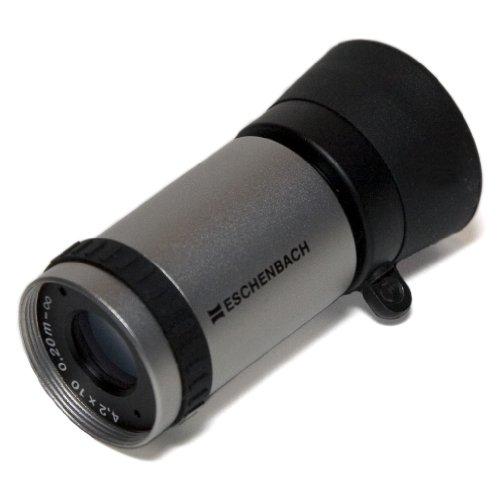 Doctor Recommended! The Keplerian series is unique in that the telescopes can be used in a variety of ways: Can be used for distance, intermediate and near use. Unlimited working distances by simply adjusting the focus (from 20 cm to infinity). It can be used as a hand - held spotting telescope and can be easily mounted in the ESCHENBACH 1631 frames and reading caps 167302 to do hands - free tasks. Features: Magnification: 4.2X Distance and 5.5X Near. Lens Size: 10 mm. Lens Type: Keplerian. Case: Vinyl. Mount: Brushed Metal with Rubber Grip. Lens Material: Achromatic Glass with Multi - Coating. Focal Range: 20 cm+ Visual Field: 10 Degrees. Weight: 30 Grams or 1.05 ozs. #16732