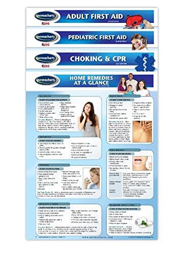 This First Aid Guide quick reference series for the home or workplace is a must have. Accidents and emergencies can occur at any time. Review these guides with your staff and family members and have them on-hand to refer to should something happen in your home or workplace. Regardless of whether you are an experienced first responder or have received basic training in first aid this quick reference guide series is a must have to stay current and help refresh the brain on these first aid essentials. In true Permacharts fashion these 4 expertly written and laminated charts provide you with just the facts, tips and information you need to know to stay on top of any emergency. NOW JUST $22.99 for all 4 quick reference guides! Charts include - Home Remedies - The problems and their remedies are listed in alphabetical order, including allergic reactions, colds, food poisoning, hangovers, insect bites, and sore throats CRP & Chocking - Principles of basic First Aid, CPR techniques, Choking - what to do!. Full color diagrams and a companion Guide to First Aid. Adult First Aid - All common injuries requiring First Aid treatment are described, Pediatric First Aid - Knowing how to provide proper care can save a child's life, prevent further illness or permanent injury, and help with healing and recovery. CRP and Choking