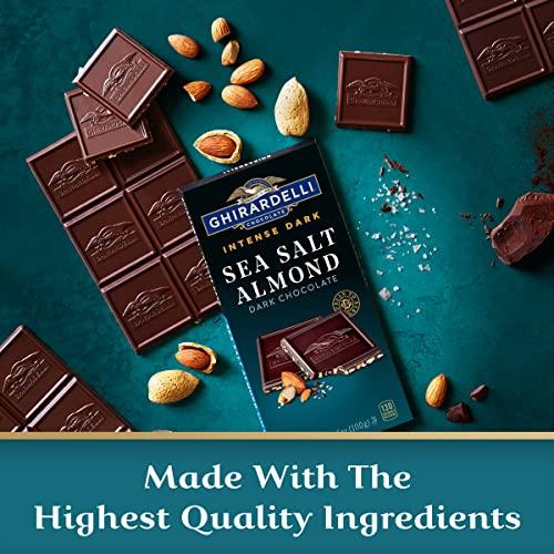- Twelve (12) 3.5 oz GHIRARDELLI Intense Dark Chocolate Bars, Sea Salt Almond