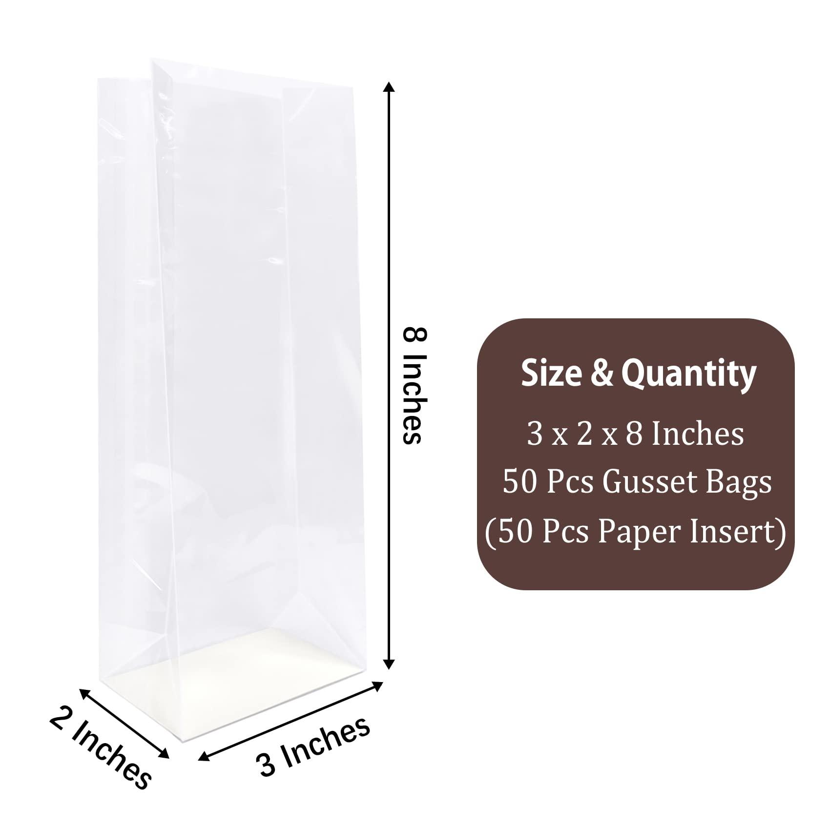- What You Will Get: You will receive 50 pieces of smore bags that measure appro 3x2x8 inches, coming with 50pcs paper inserts. Our gusseted cello bags can dress up your treat, bakery, soap beautifully and will instantly brighten up your party