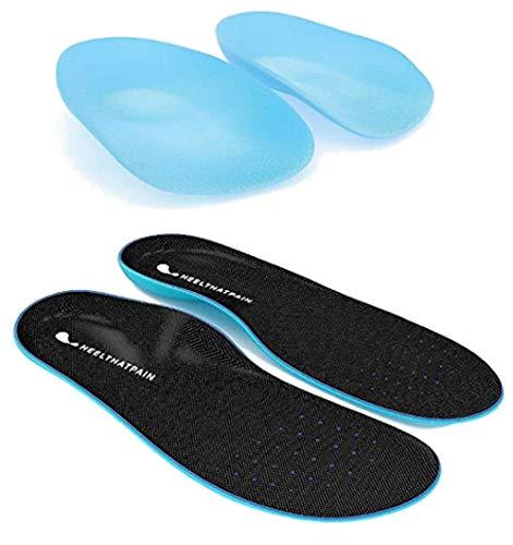 - HEEL THAT PAIN GEL INSOLES, Medium (W 6.5-10, M 5-8): Ideal treatment for plantar fasciitis, heel spurs, bone spur, flat feet, high arch, shin splints, tendonitis, and other disorders. Gradually improves your condition by applying therapeutic acupressure to your heel, reducing pain in an all-natural way. Most people experience pain relief within 1-8 days of regular use. You wont just walk, youll fly!