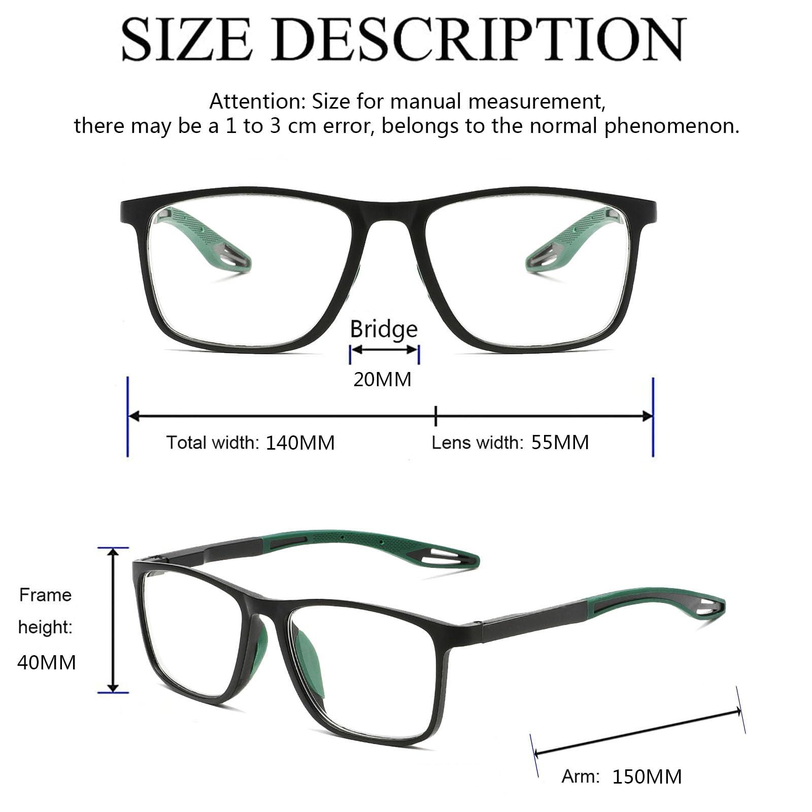 - High quality TR90 reading glasses Professional sports reading glasses for men, sturdy and durable, wear without pressure, do not pinch the face. The nose pads is made of environmentally friendly silicone material, which fits the face, anti sweat and anti slip. The soft TR90 temples can bend freely and are not easily broken.