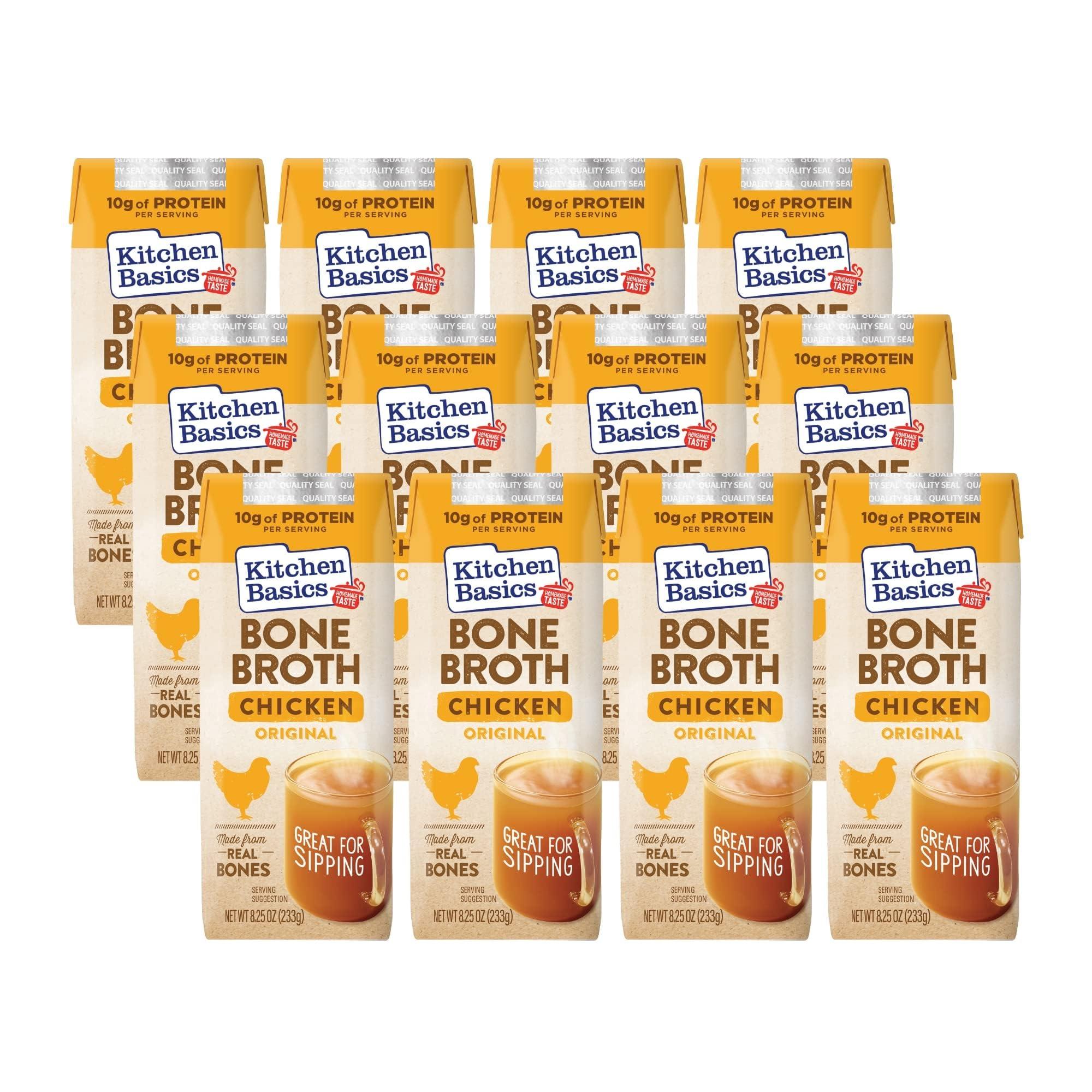 Kitchen Basics Original Chicken Bone Broth builds upon our 20+ years of stock expertise to deliver a rich, savory bone broth full of protein and flavor. Boasting 10g of protein and only 50 calories per serving, it makes a delicious, sippable snack. Drink warm as is, or add your own herbs and spices. Get creative and add it to soups, stews, sauteed vegetables and more, too.