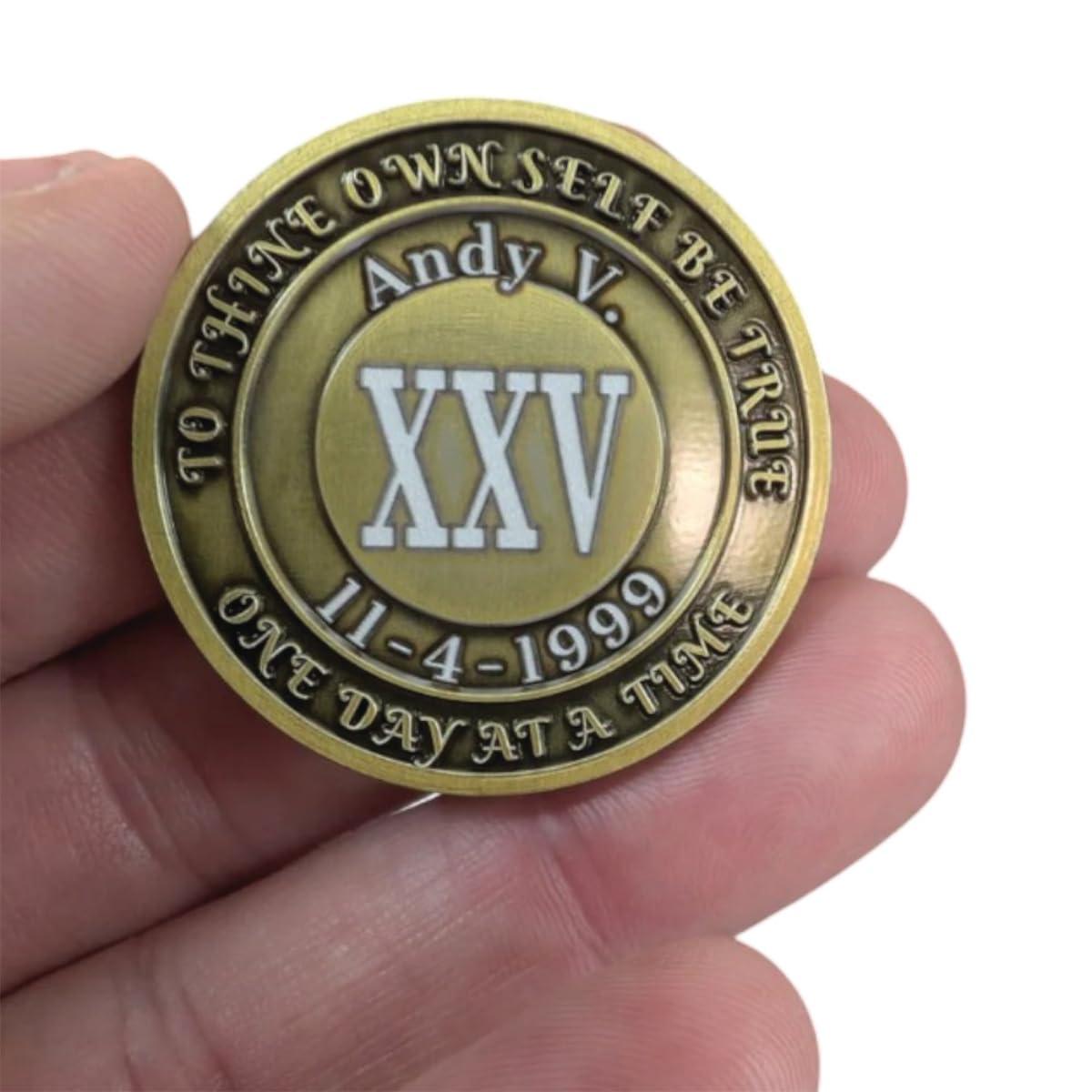 - Each sobriety coin will come in a special gift box. These Recovery Coins are 40mm in size and 2.5mm thick. True Heavy Metal Sobriety chips.