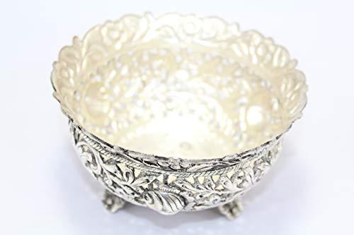 Rajasthan Gems Handmade Dish Bowl Oxidized 925 Sterling Solid Silver India Hand Engraved F