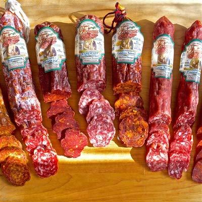 ITALIAN SALAMI BUNDLE BEST OF THE BEST, All Natural & Nitrate Free Includes a stick of each of the following: SOUPY- hot salami, 10 oz Spianata Calabrese Salami, made with true Calabrian peppers 14-16 oz Finocchiona, a Tuscan salami 10 oz Sopressata- 12 oz Genoa Salami- All natural and nitrate free, 10-12 oz Felino Pistachio , Pepperoni- All Natural and nitrate free,8 oz & 8 oz stick of Tartufo Salami