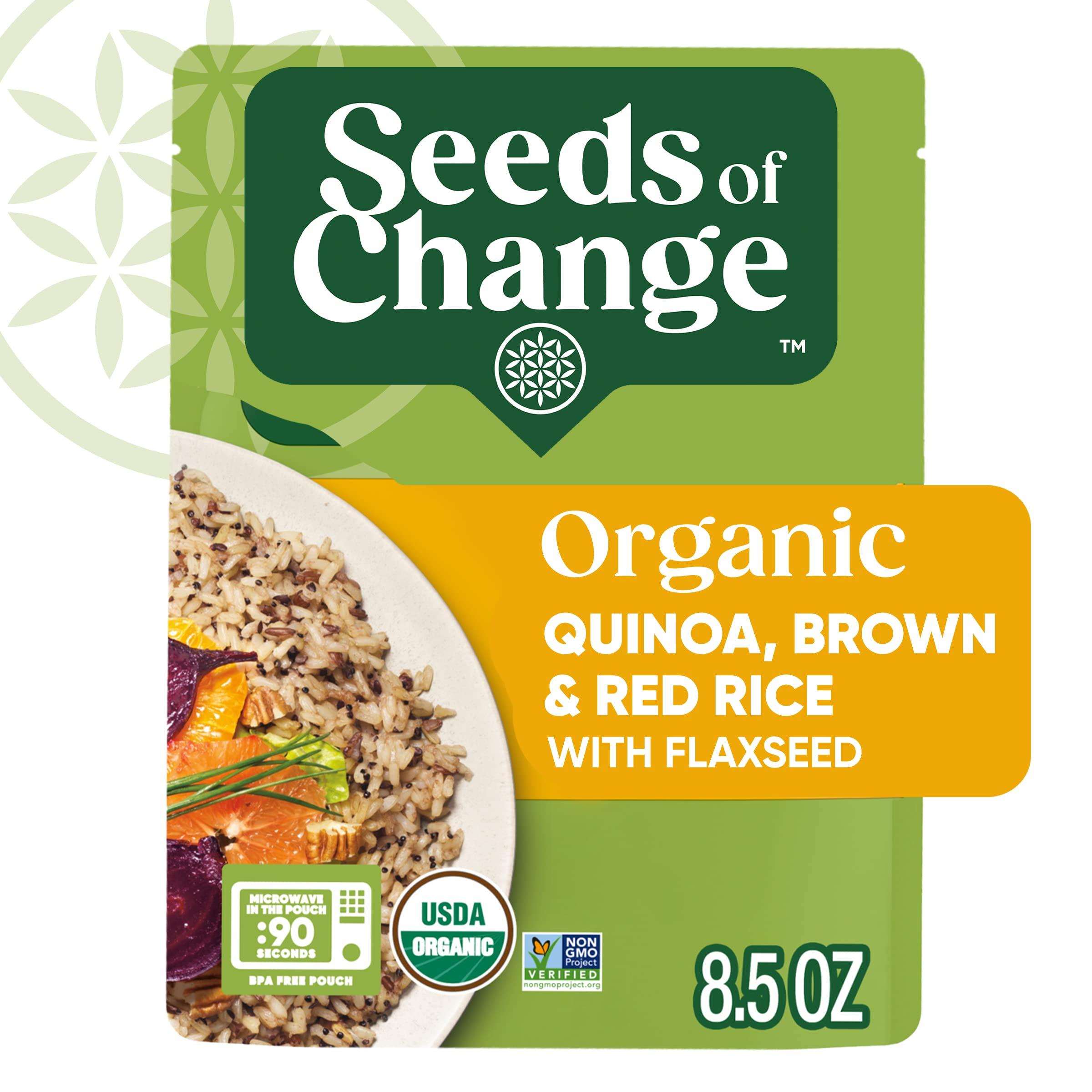 - Twelve 8.5 OZ pouches of SEEDS OF CHANGE Organic Quinoa, Brown & Red Rice with Flaxseed
