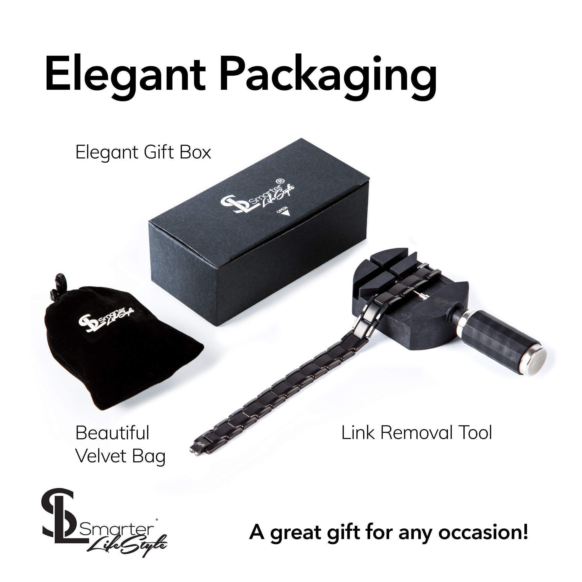 - ONE-SIZE FITS ALL This bracelet arrives at 8.25 Inches (21cm) and includes our FREE sizing tool that can be used to add/remove links for your perfect fit. It takes just a few minutes and instructions are included as well. For those with larger wrists, extra links can be provided for an optimal fit, by request! Looks great on both men & women (unisex)