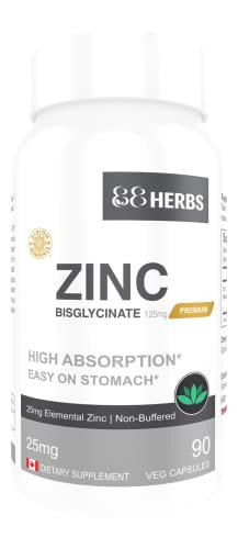 88Herbs Pure Zinc Bisglycinate is a fantastic zinc supplement. Many types of supplemental zinc on the market use cheap forms of zinc with low absorption rates, they are hard on the digestive system, and they cause nausea as a major side effect. Consumers also need to be careful to ensure that they are getting a non-buffered form of zinc bisglycinate. It is possible to call a supplement zinc bisglycinate on a label, even if you add in other forms of inferior zinc into the product. We use 100% pure, non-buffered, zinc bisglycinate, which is well known for being the most absorbable form of zinc. It is also the easiest on the stomach and wont cause nausea. We provide easy-to-swallow vegetarian capsules with no unhealthy fillers (no magnesium stearate) etc.